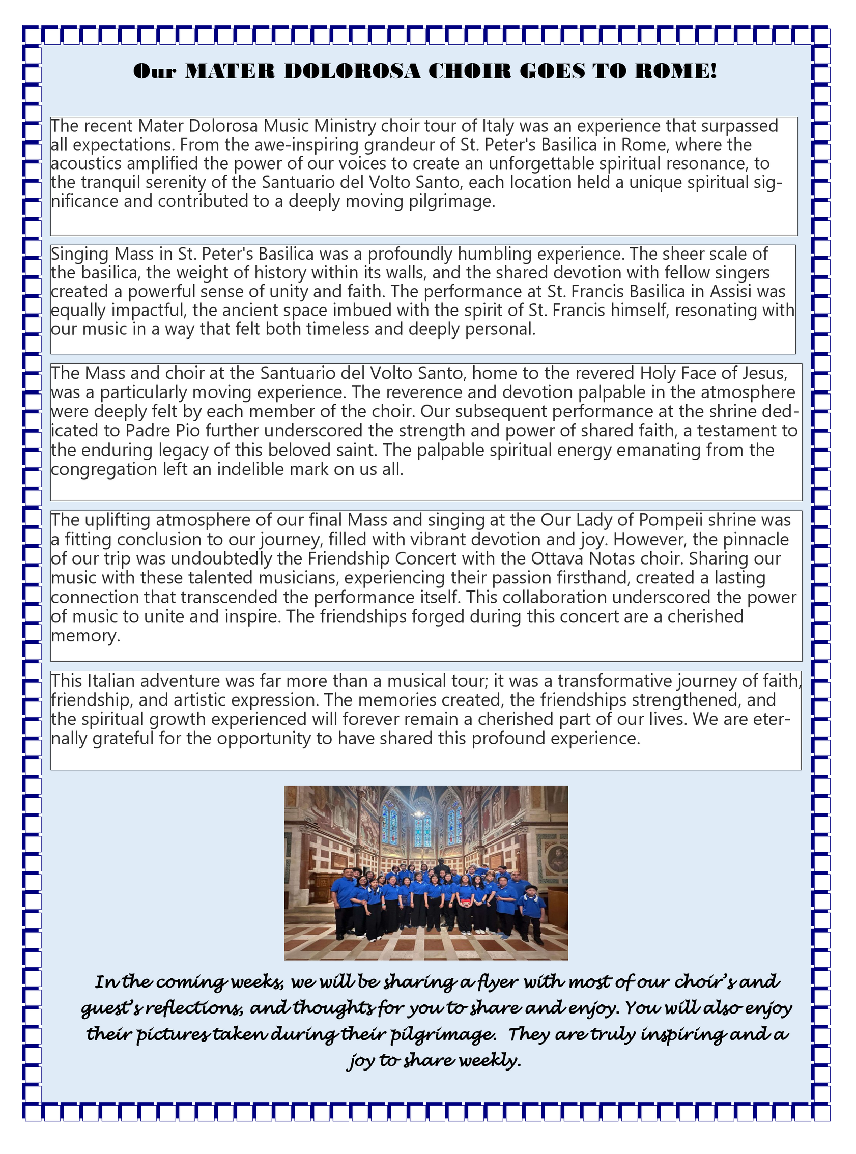 Mater Dolorosa Choir's Pilgrimage to Italy